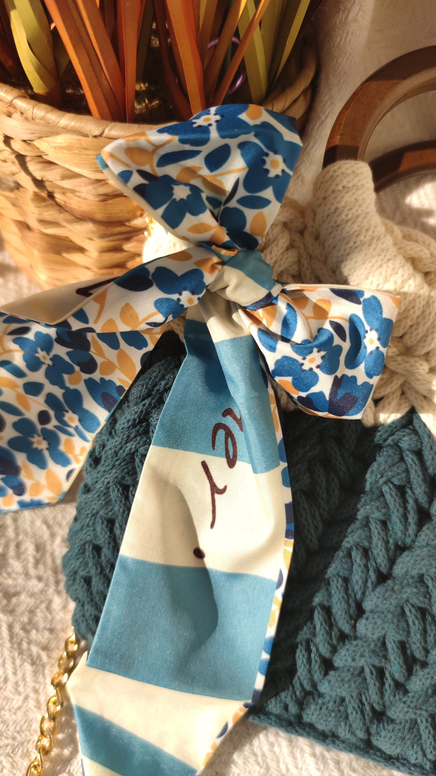 Torba dolazi s lancem od 1 m i maramom.