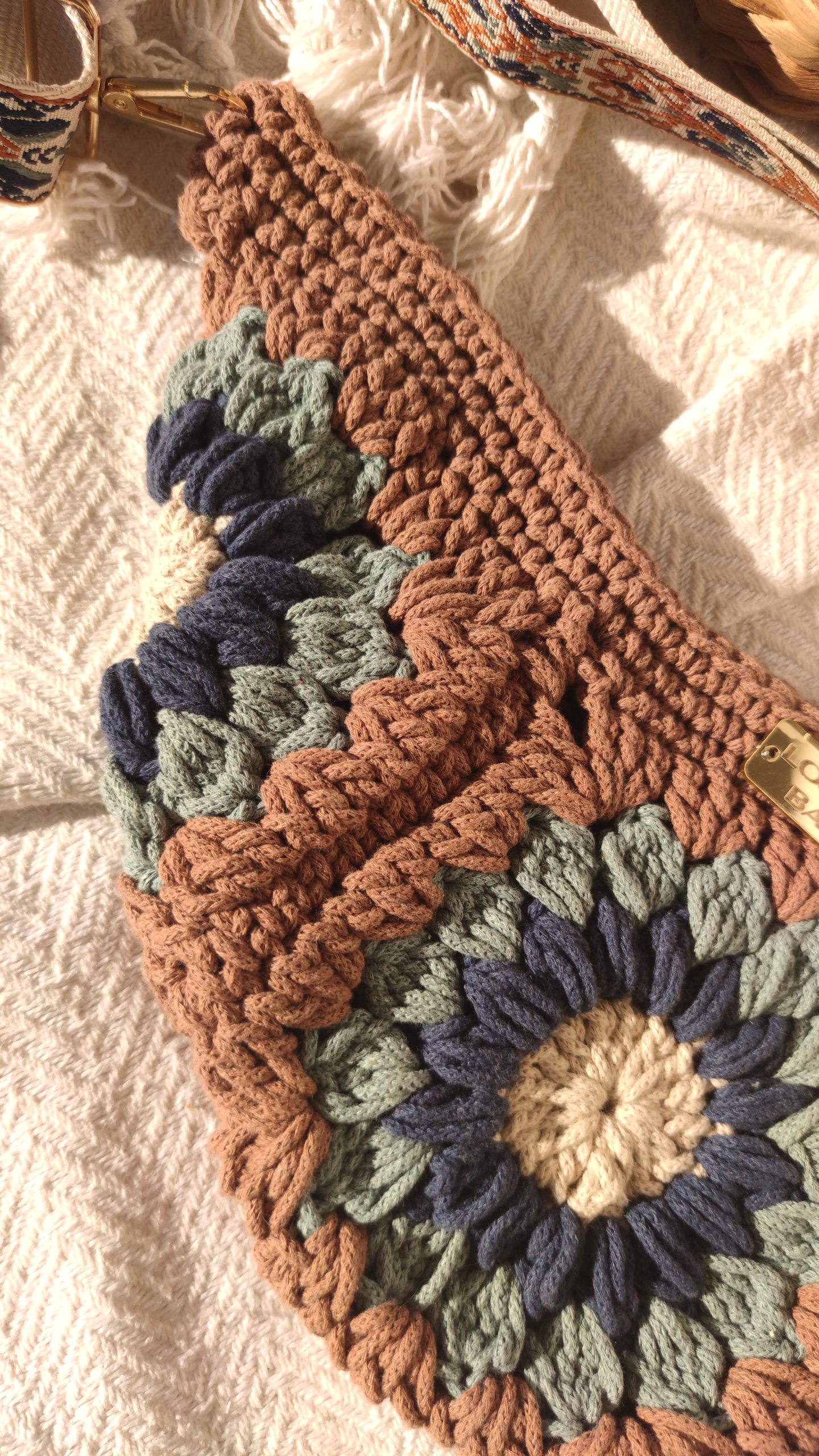 Torba preko tijela napravljena od bakinih kvadratića sa zelenim detaljima